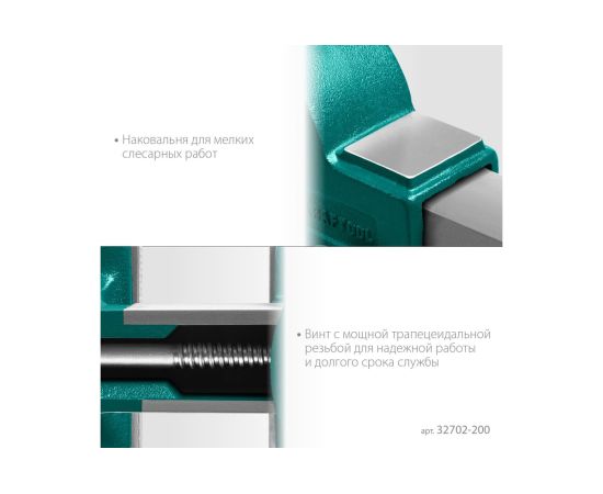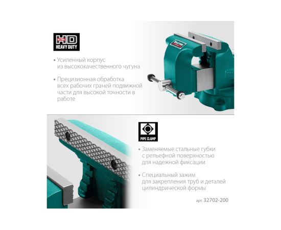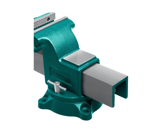 Слесарные тиски изготовлены из высококачественного чугуна с шаровидным графитом и соответствуют самым высоким техническим требованиям. Обеспечивают длительную и качественную работу. Встроенная наковальня и поворотное на 360˚ основание расширяют функционал использования инструмента. Прецизионная обработка всех рабочих граней подвижной части гарантирует высокую точность в работе.
