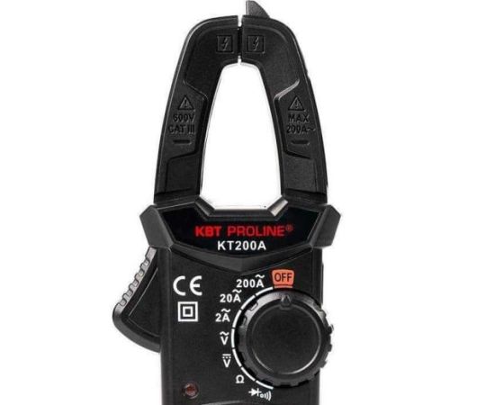 Токовые цифровые клещи КВТ KT 200A PROLINE 79129 – многофункциональные цифровые токовые клещи с автоматическим выбором пределов измерений и световой индикацией безопасности.