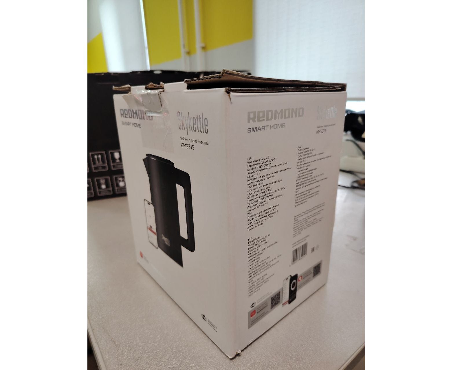 УЦ Электрочайник Redmond KM231S SkyKettle черный (плохая упаковка, трещина на пластике крышке, осколки пластика в крышке)