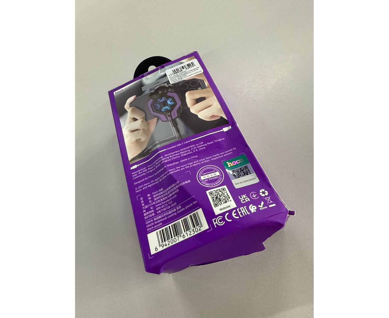 УЦ Кулер игровой (охлаждение) для смартфонов HOCO GM26 Ambitious cooling mobile phone fan (черный/фиолетовый) (плохая упаковка)