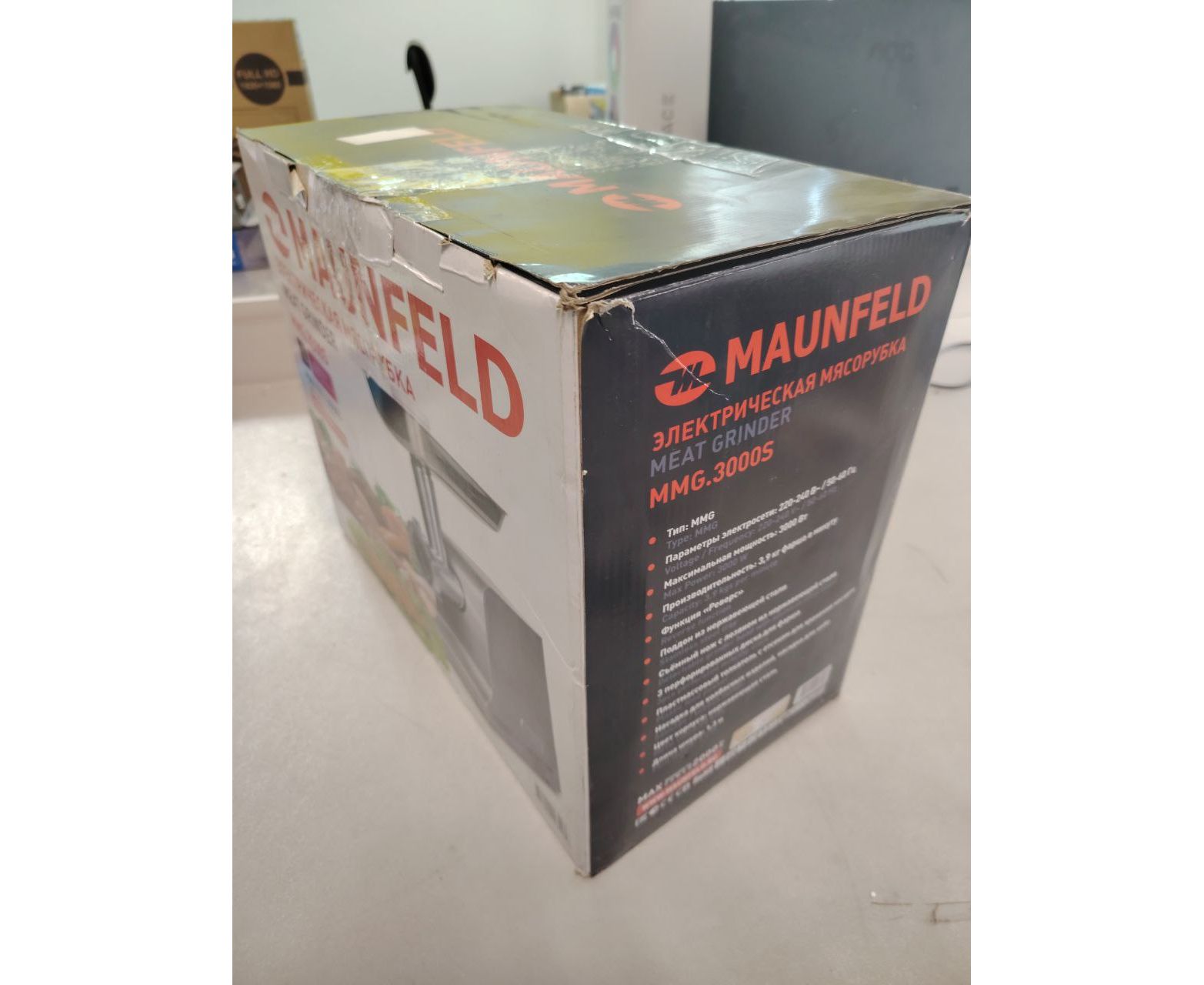 УЦ Мясорубка MAUNFELD MMG.3000S, металлик (плохая упаковка, бу, замена мотора)