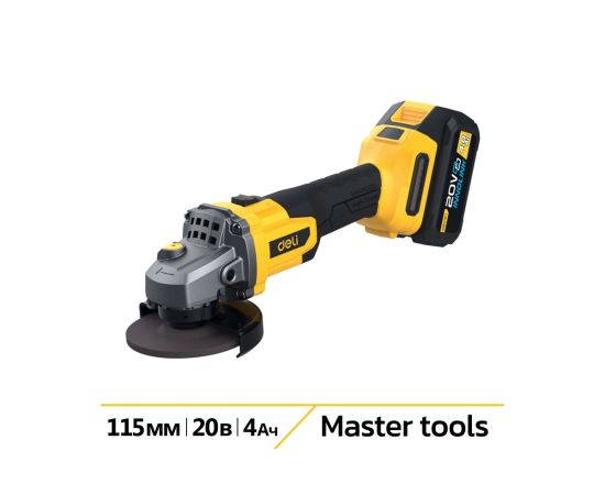 Угловая шлифмашина аккумуляторная Deli DC601 с АКБ и ЗУ, 20В, 115мм, М14, 3500/6000/8500об/мин, сумка