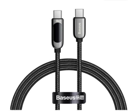 USB-кабель Baseus CATSK-B01, Type-C - Type-C, 100W, ткань, 1.0 м, круглый, черный, фирменная упаковка