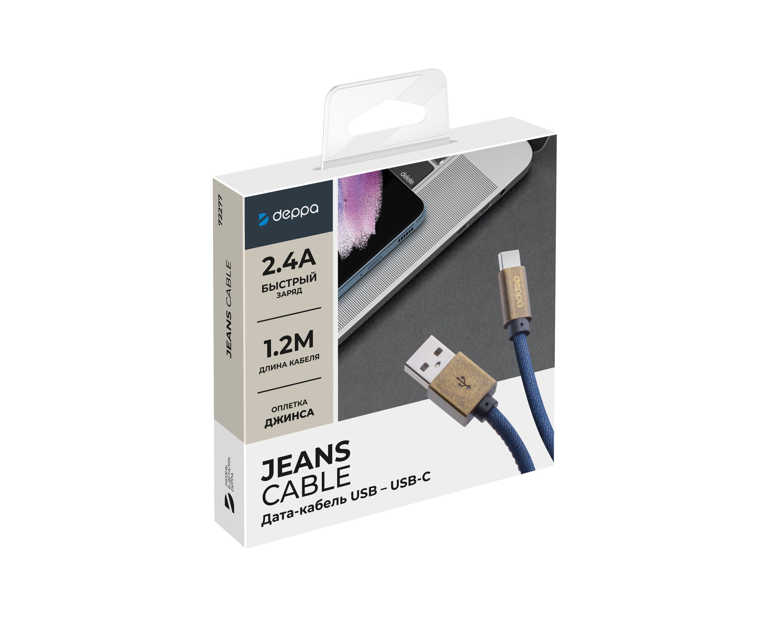 USB кабель Deppa 72277 Jeans USB-USB Type-C Blue (1,2м)