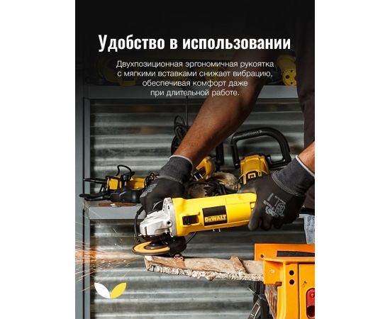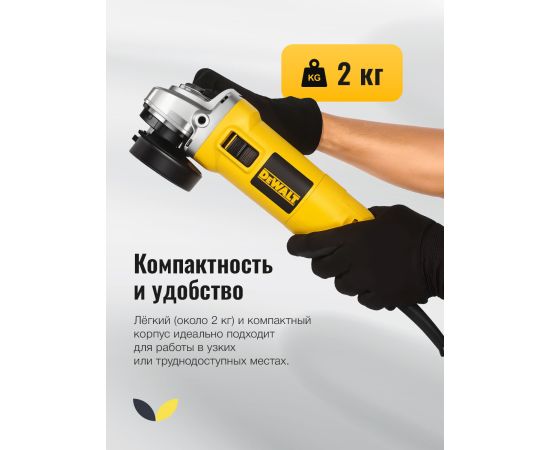 DEWALT DW802-IN, 850 Вт, 4' (100 мм), мощная угловая шлифовальная машина, разработанная для тяжелых условий эксплуатации, с блокировкой шпинделя и ползунковым переключателем, боковая рукоятка Об этом товаре Идеально подходит для высокоскоростного шлифования. Так же обеспечивает более легкое управление и высокую точность резки. Оснащена мощным двигателем мощностью 850 Вт. Он может обеспечивать высокую производительность при скорости холостого хода 11000 об/мин. Может использоваться в течение длительного времени без перегрева. Система вентиляторов обеспечивает максимальный поток воздуха Эргономичная конструкция позволяет пользователю легко управлять шлифовальной машиной в труднодоступных местах. Идеально подходит как для левшей, так и для правшей, поскольку оснащена регулируемой боковой рукояткой. УШМ с защитным кожухом. Он защищает оператора от летящих искр и стружки. Идеально подходит для профессионального и промышленного использования. Может использоваться для резки, заточки, удаления ржавчины. Продукт произведен компанией Stanley Black & Decker под зарегистрированными торговыми марками.