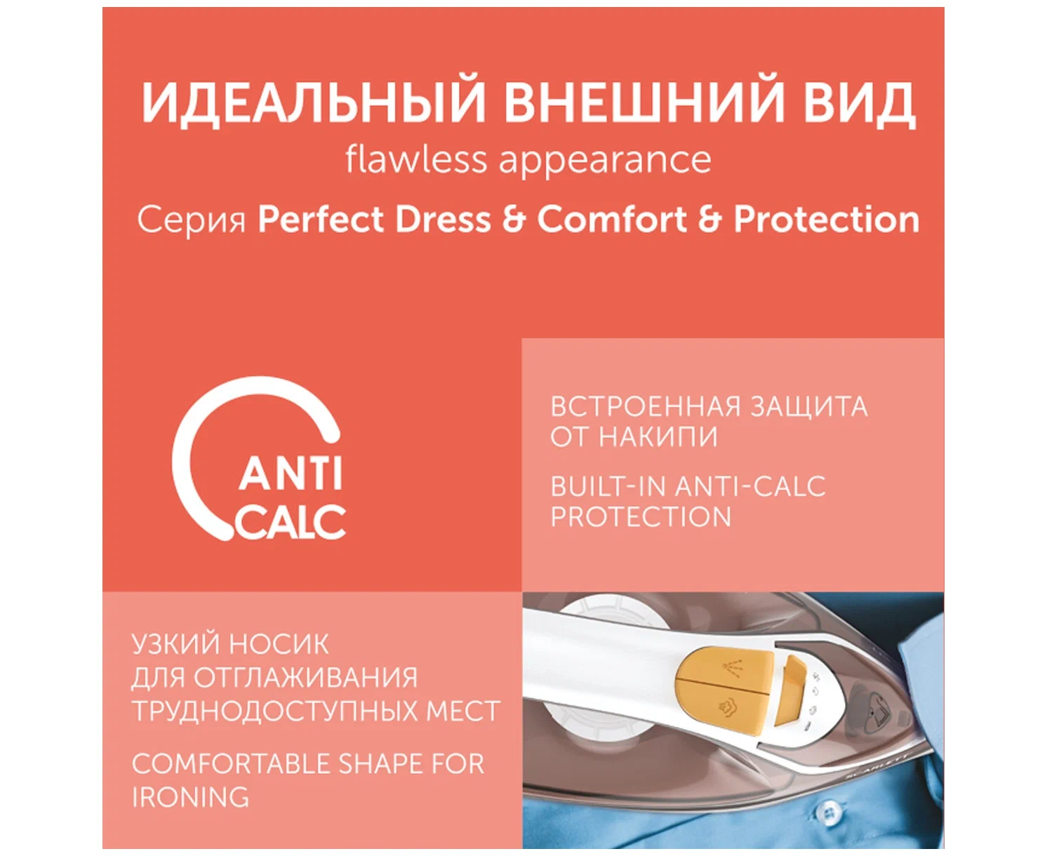 автоматическая регулировка пара, паровой удар, регулировка подачи пара, система самоочистки, функция разбрызгивания, Система защиты от накипи ANTI-CALC, защита от накипи