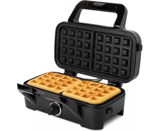 Антипригарное покрытие не позволяет блюдам прилипнуть к панелям. Регулятор температуры, расположенный на корпусе вафельницы, позволяет установить нужную интенсивность нагрева панелей.