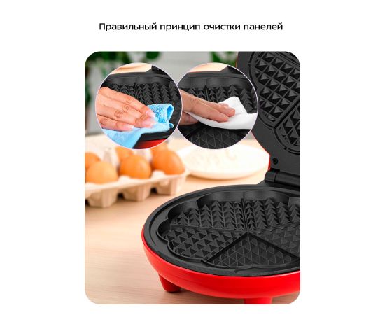 Очищайте панели бумажными полотенцами, удаляя остатки теста. Затем протрите мягкой влажной тканью. При сильных загрязнениях используйте немного мягкого моющего средства. Избегайте абразивных средств, чтобы не повредить антипригарное покрытие.