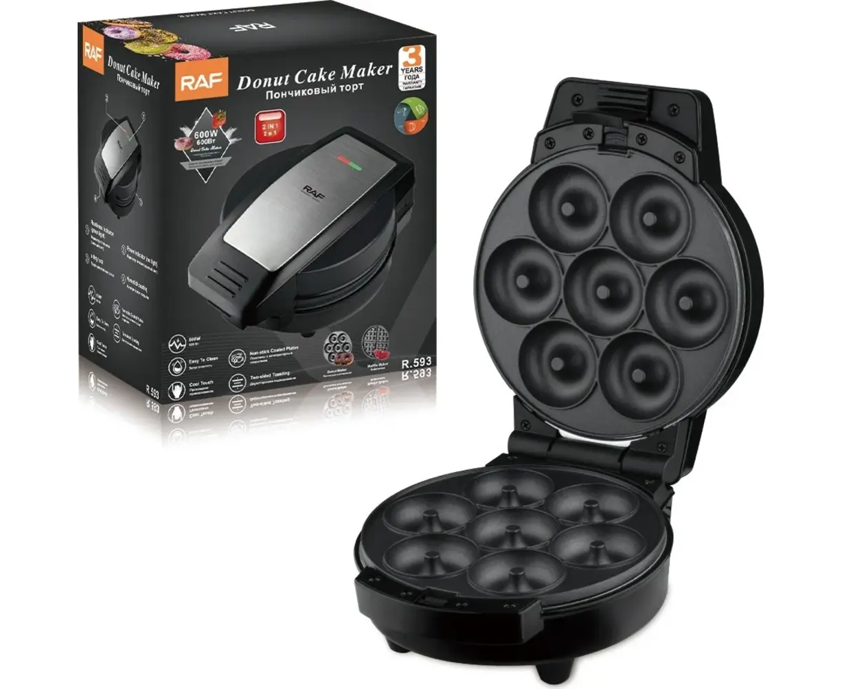Вафельница RAF R.593 — это идеальный помощник для любителей сладостей! С мощностью 600 Вт она быстро и эффективно готовит вкусные венские и бельгийские вафли, а также пончики, которые порадуют вас и ваших близких.