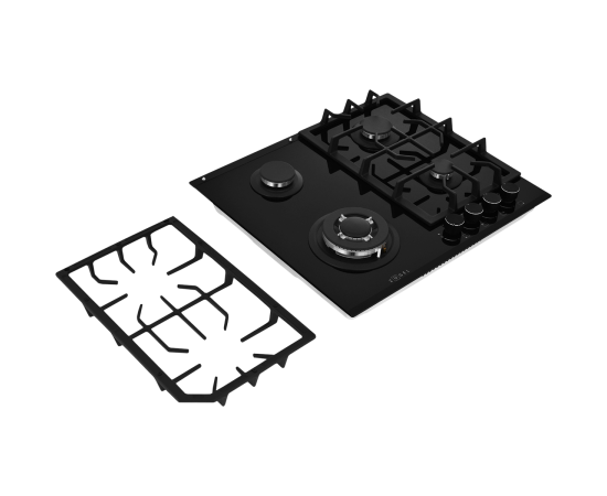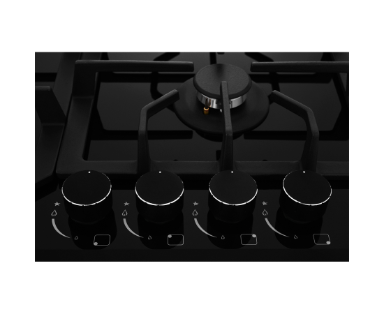 Мощная WOK-конфорка с 2 рассекателями и тройным контуром огня, Металлические дизайнерские ручки, Технология "газ на стекле", Форсунки для конверсии(природный/сжиженный) газа в комплекте