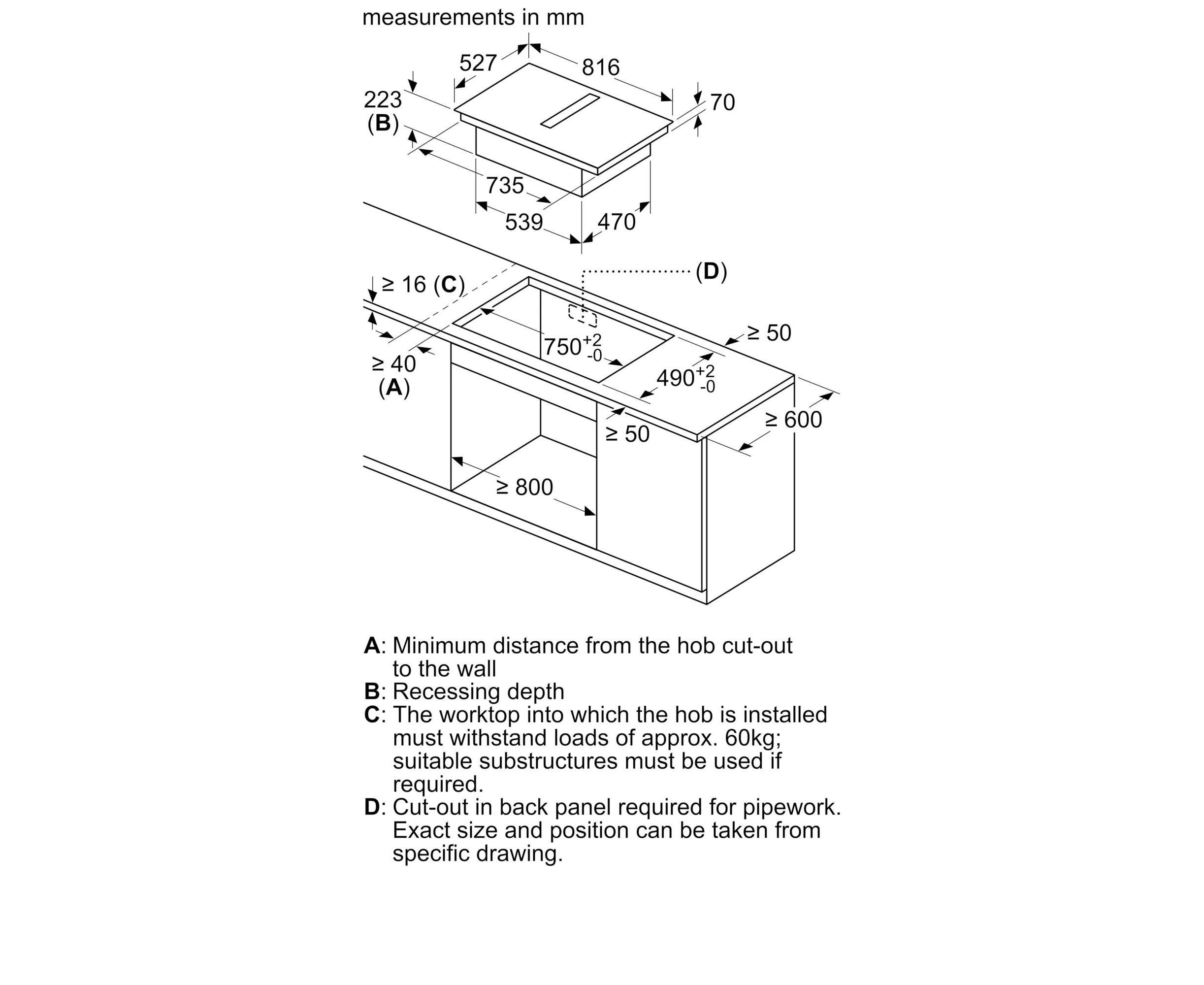 Размеры для встраивания (ШхГ)750x490 мм