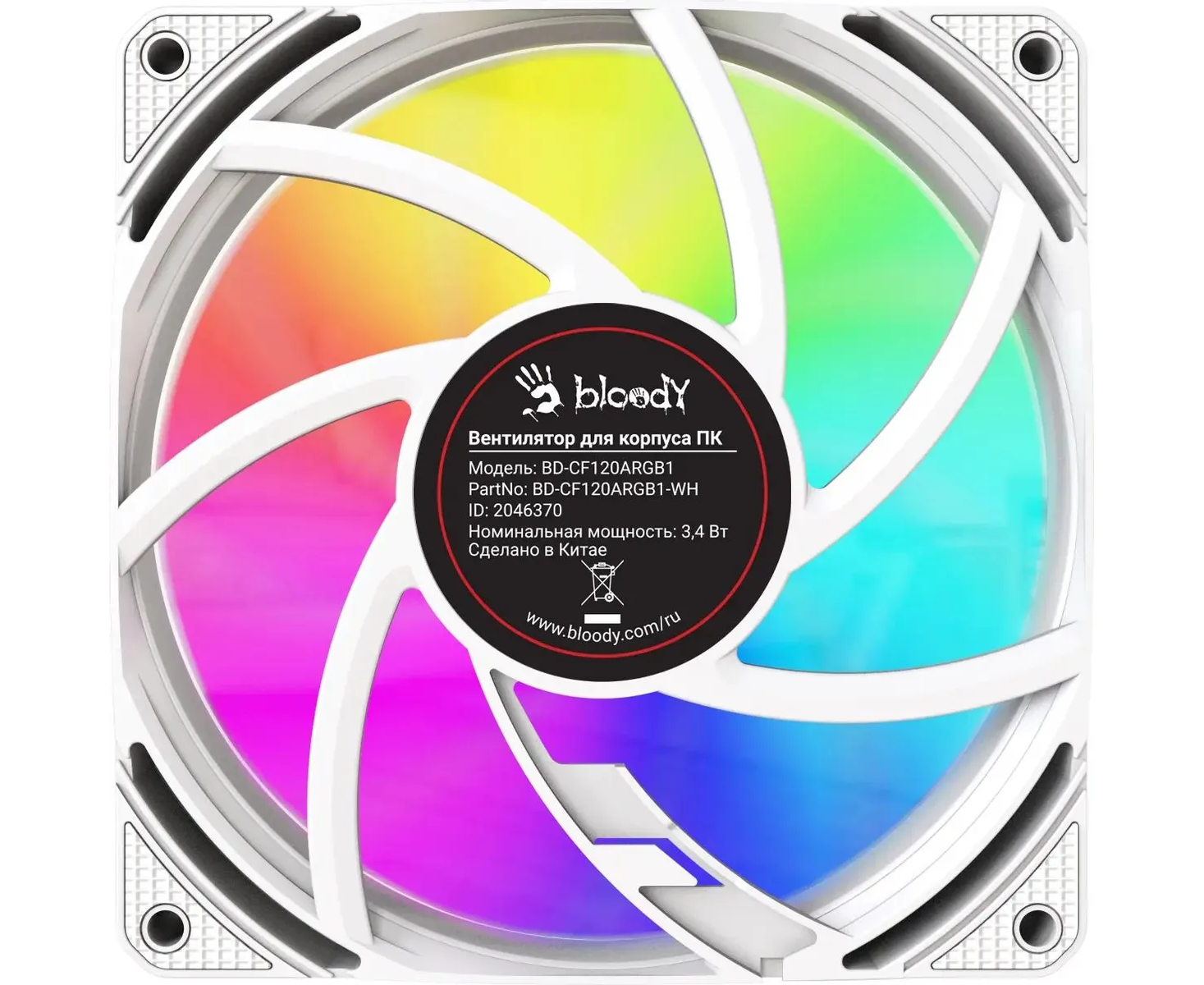 Вентилятор Bloody BD-CF120ARGB1 ARGB (BD-CF120ARGB1-WH) 120х120x25 белый 4-pin 26дБ (упак. 1шт) Ret