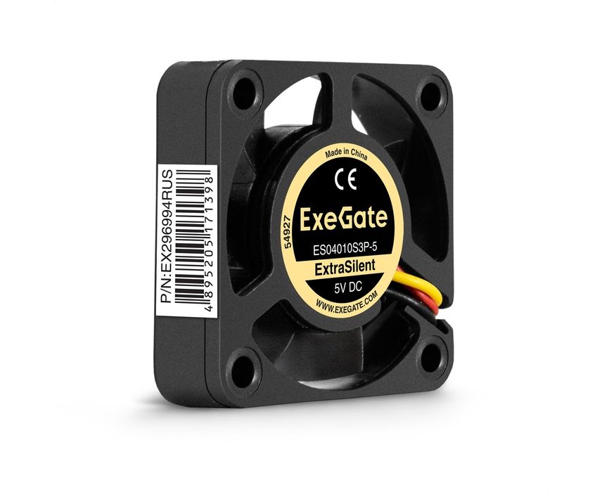 Вентилятор ExeGate ExtraSilent ES04010S3P-5 EX296994RUS 5В DC (40x40x10 мм, Sleeve bearing (подшипник скольжения), 3pin, 4500RMP, 22dBA)