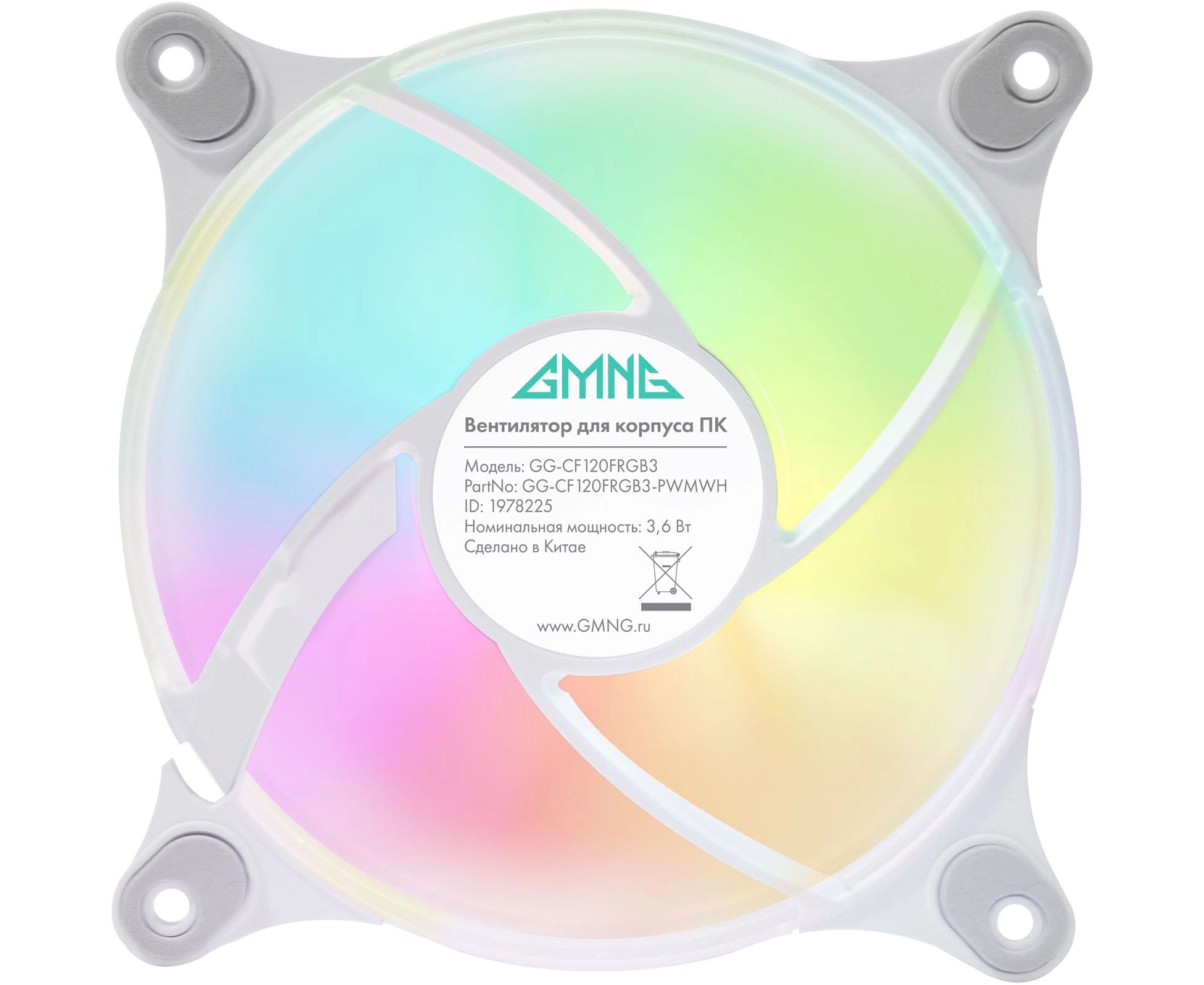 Вентилятор GMNG GG-CF120FRGB3-PWMWH RGB 120x120x25mm белый 4-pin 20-28dB 109gr Ret