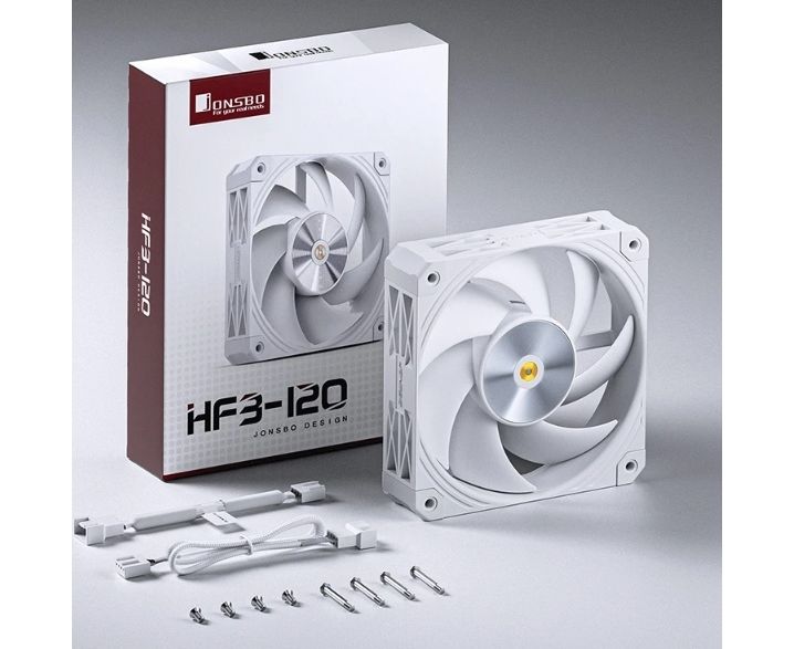 Вентилятор JONSBO HF3-120W 120х120х30мм (PWM, 300-2800об/мин, белый) Retail
