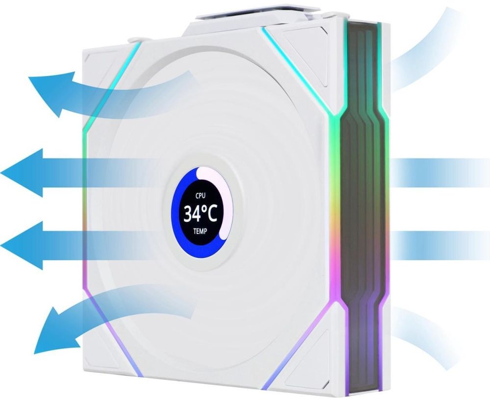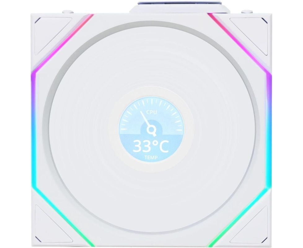 Вентилятор Lian-Li Uni Fan TL Wireless LCD 120 LCD Reverse ARGB (G99.12RTLLCD1W1W.R0) 120х124x28 белый 4-pin 31дБ Ret