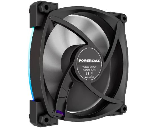 Вентилятор Powercase (M55-12 ARGB) Black 120x120x25мм (PWM, 4pin PWM (M+F)+ 3pin ARGB (M+F), 600-1500 об/мин) Bulk