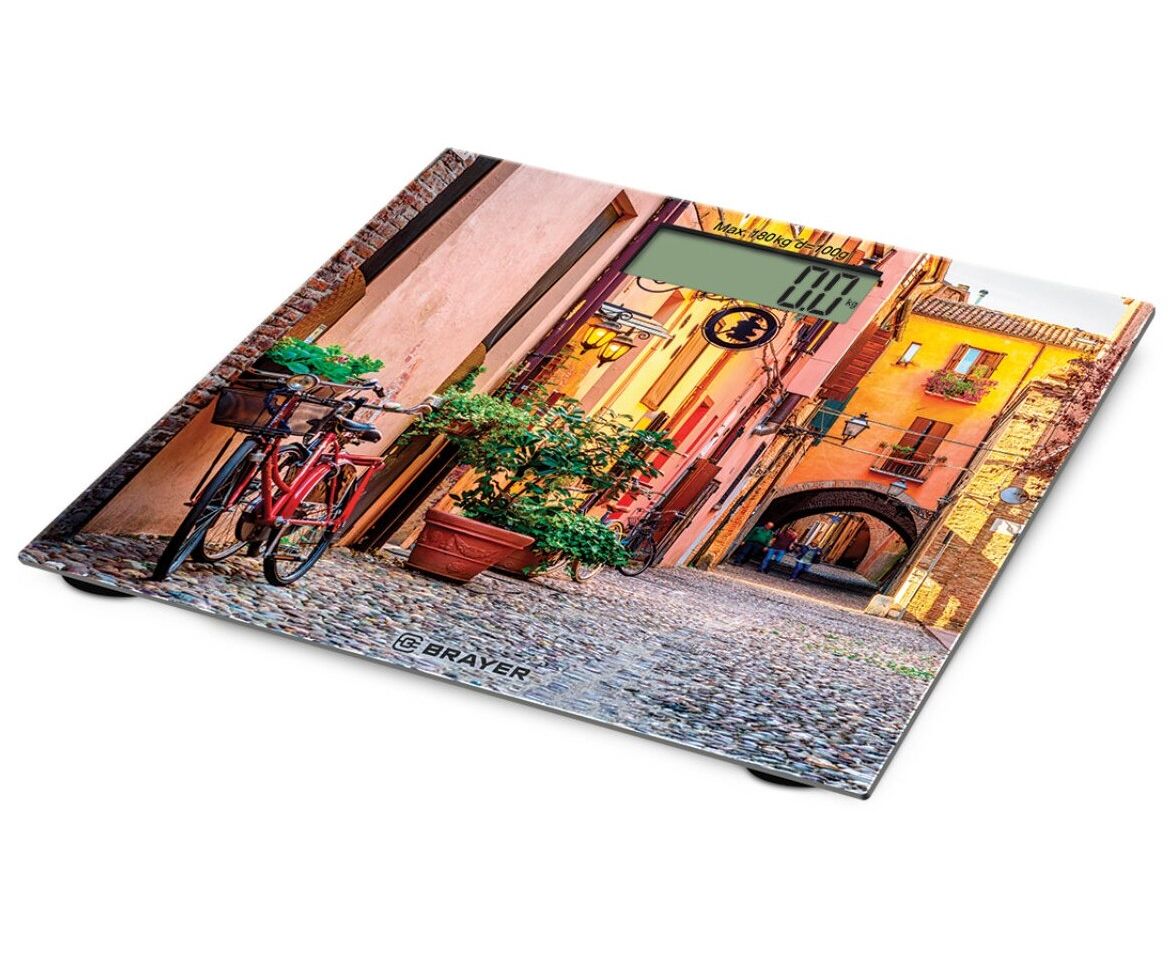 Напольные весы BRAYER BR3730, вес до 180 кг, разм 30*30 см, толщ.6 мм, диспл 96,6*43 мм, 1*CR2032