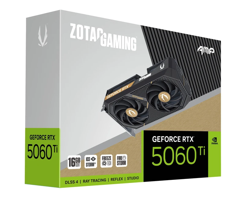 Видеокарта ZOTAC Gaming GeForce RTX 5060 Ti AMP 16Gb (ZT-B50620F-10M) DDR7 128 bit 2407/2632 MHz 3*DP/HDMI 2*Fan RTL