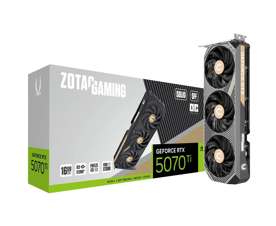 Видеокарта Zotac RTX 5070 Ti Solid SFF OC 16Gb (ZT-B50710J3-10P) 256bit GDDR7 2482/28000/HDMIx1 PCI-E 5.0