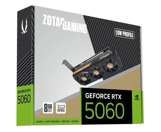 Видеокарта Zotac RTX5060 Low Profile 8GB (ZT-B50600L-10L) GDDR7 128bit 2xDP HDMI 3Fan LP Lite Pack