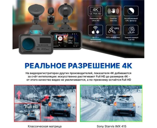 Видеорегистратор TrendVision TDR-725 Real 4K Max черный 8Mpix 2160x3840 2160p 170гр. GPS NT96670