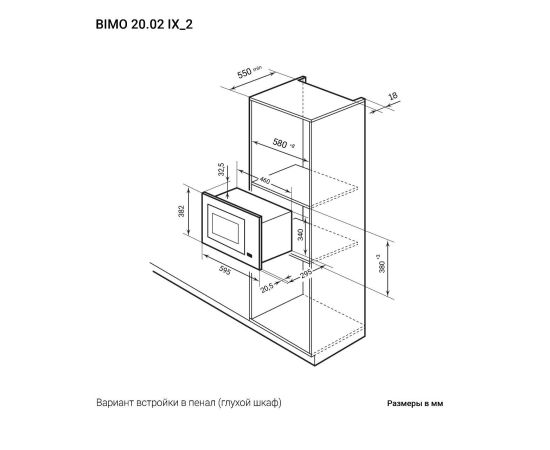 Встраиваемая микроволновая печь LEX Bimo 20.02 Inox
