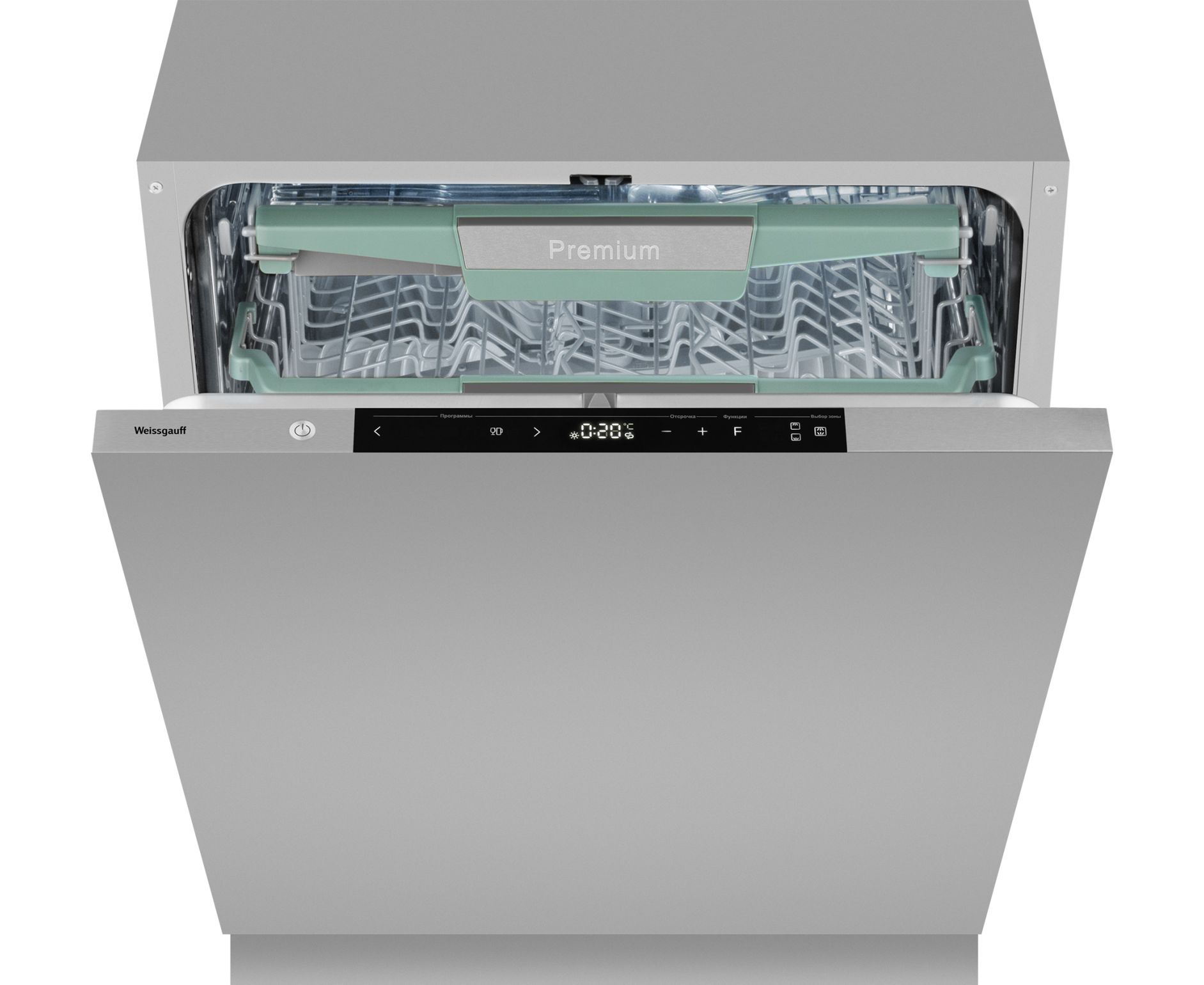 Встраиваемая посудомоечная машина с проекцией времени на полу, авто-открыванием и инвертором Weissgauff BDW 6151 Inverter Touch AutoOpen Timer Floor