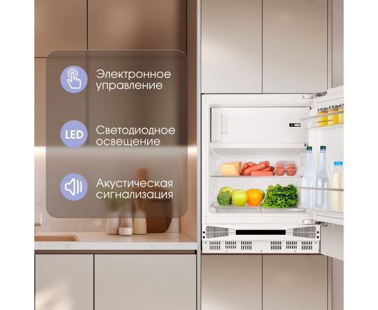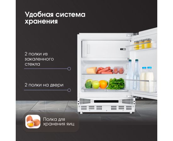 Конструктивные особенности светодиодное освещение камеры, 2 полки из закаленного стекла в камере, 2 полки на двери, полка для яиц, перевешиваемая дверца