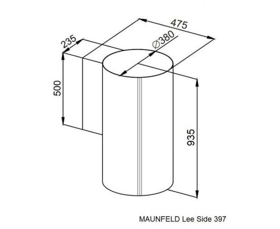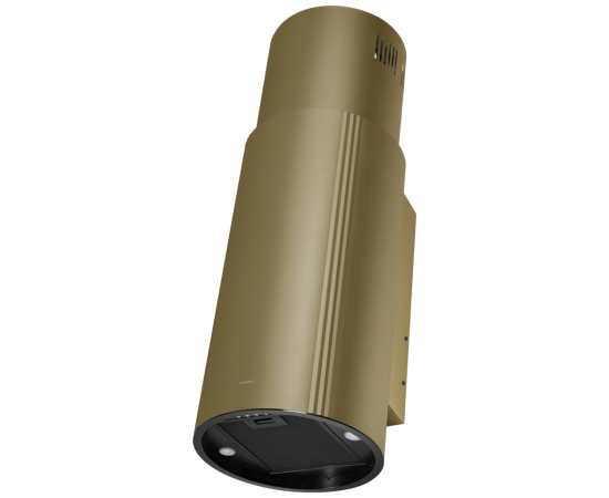 Корпус цилиндрической формы, выполненный из нержавеющей стали с термостойким покрытием, крепится к стене над поверхностью плиты. В нижней части вытяжки находится алюминиевый многослойный жироулавливающий фильтр. Он легко вынимается и полностью разбирается, что сильно упрощает чистку.