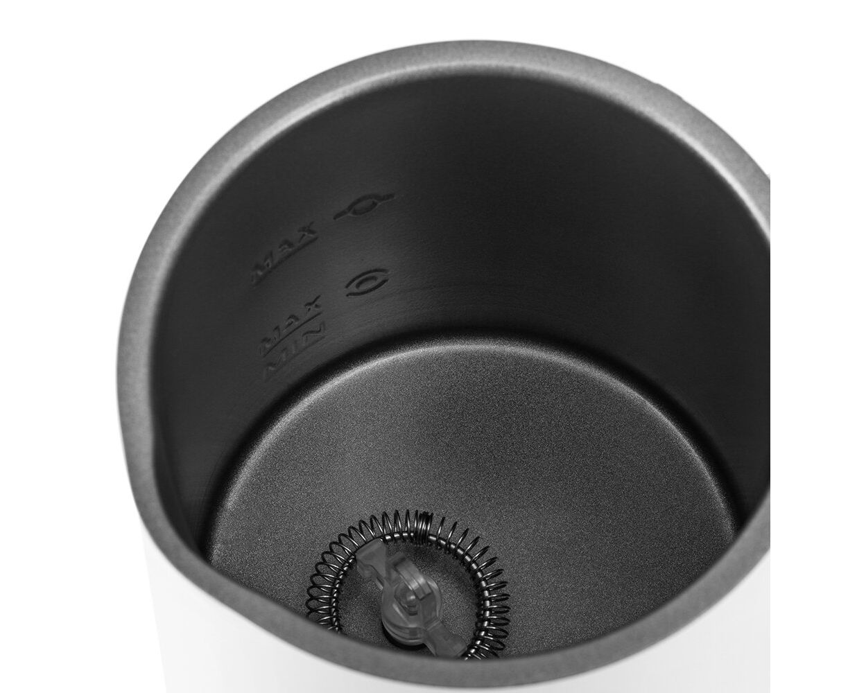 Капучинатор автоматически отключается, когда процесс взбивания или смешивания выполнен. Также вы можете остановить процесс приготовления вручную. Управление осуществляется с помощью одной кнопки на корпусе.