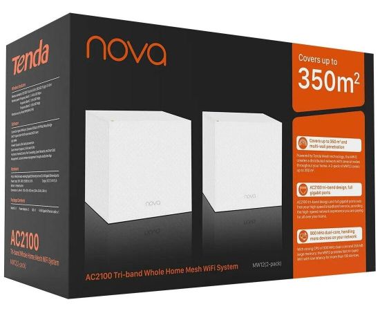 Wi-Fi Mesh система Tenda MW12 (2-pack) трехдиапазонная гигабитная АС2100