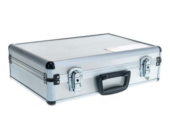 Ящик-чемодан предназначен для хранения и удобной транспортировки инструментов. Изготовлен из алюминия, а внутренняя отделка выполнена из мягкого пористого материала, что обеспечивает более бережное хранение инструмента. Переставные перегородки позволяют максимально эффективно использовать внутреннее пространство. Чемодан надежно закрывается с помощью металлических защелок. Удобная рукоятка обеспечивает комфортную переноску. Инструментальный ящик применяется как в профессиональной сфере, так и в быту: он очень вместительный, помогает упорядочить нужные в работе предметы и всегда держать их под рукой.