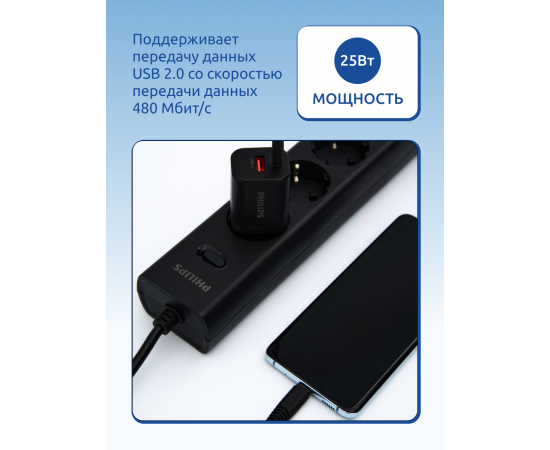 Представляем вам мощное и универсальное сетевое зарядное устройство - Зарядное устройство для телефона Philips DLP2560DB/97 Travel. Этот превосходный адаптер позволяет быстро заряжать различные устройства, включая телефоны, планшеты и другие гаджеты с портом USB - C (Type C). Также он оснащен портом USB-A. С его помощью вы сможете всегда быть на связи и не беспокоиться о разрядке вашего устройства в самый неподходящий момент.
