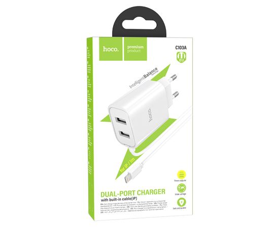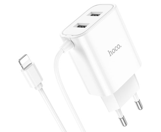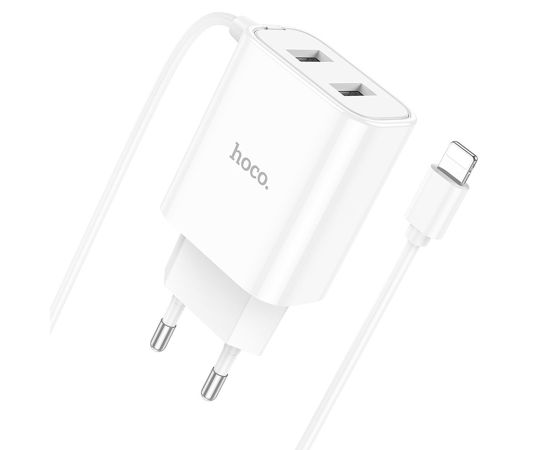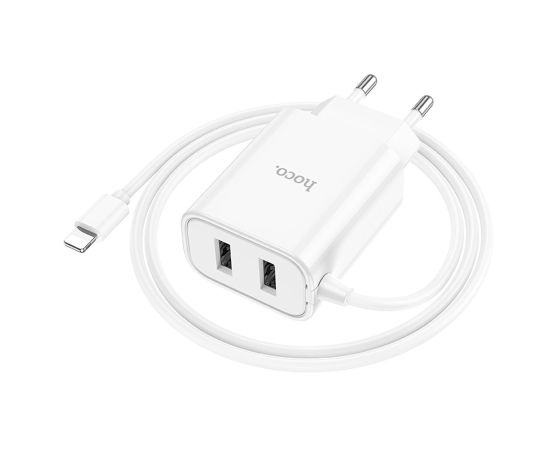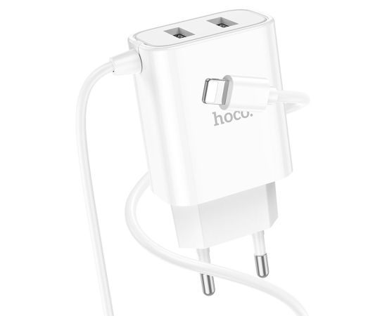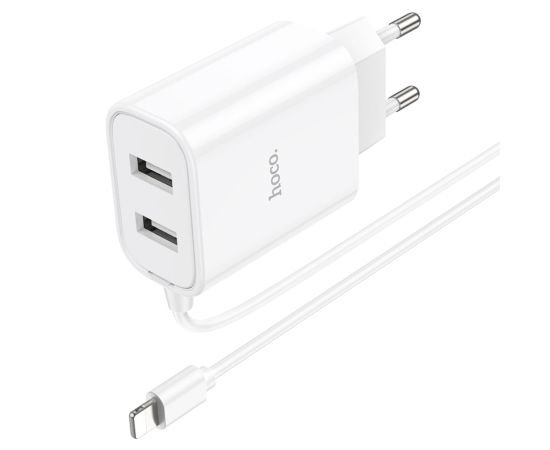 Сетевое зарядное устройство HOCO C103A Courser 2xUSB с Кабелем Lightning, 2.1A, 10.5W, белый