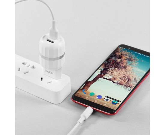 Сетевое зарядное устройство HOCO C41A Wisdom 2xUSB с Кабелем USB - Micro, 2.4A, 10.8W, белый