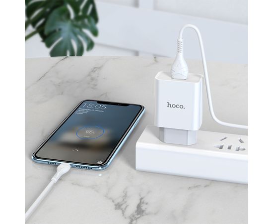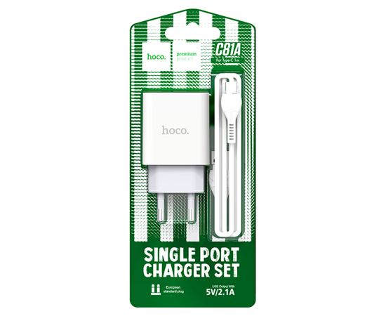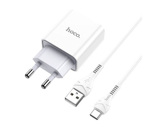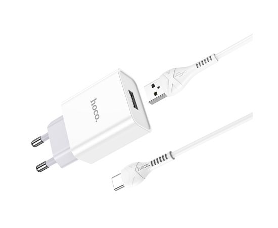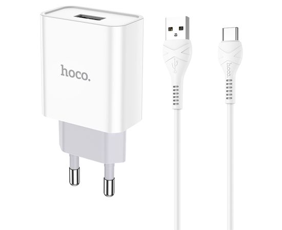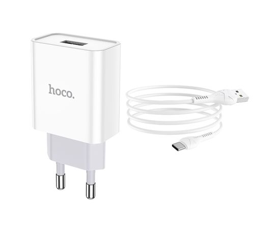 Сетевое зарядное устройство HOCO C81A Asombroso single 1xUSB с Кабелем USB - Type-C, 2.1A, 10W, белый