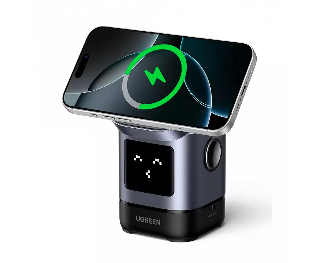 СЗУ UGREEN W709 (45775) UNO 2-in-1 Robot Magnetic Wireless Charger 20W With Cable USB-C-USB-C 1m Gray