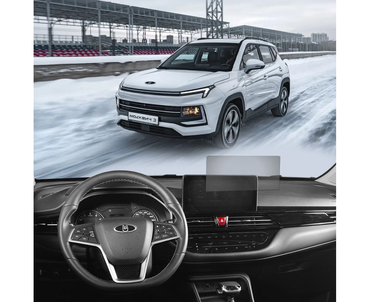 Защитное гибридное стекло МАТОВОЕ Krutoff для экрана мультимедии Москвич 3 2022