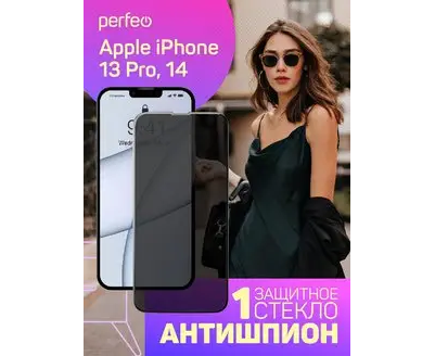 Защитное стекло "Антишпион" тех пак Apple iPhone 13/13 Pro (6.1") черный
