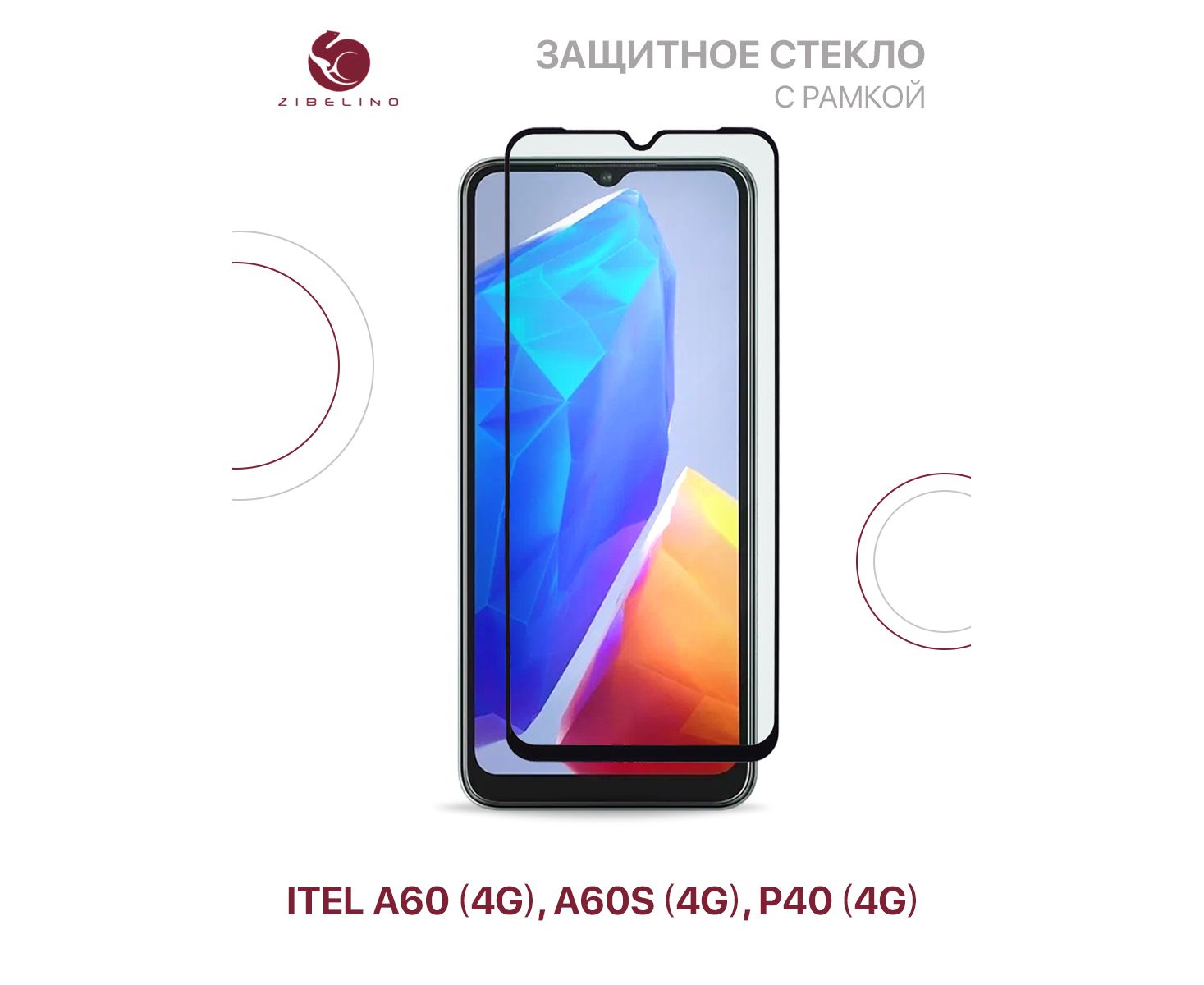 Защитное стекло для Itel A60 (4G), A60s (4G), Itel P40 (4G) с рамкой (Ител А60, А60s, Ител Р40)