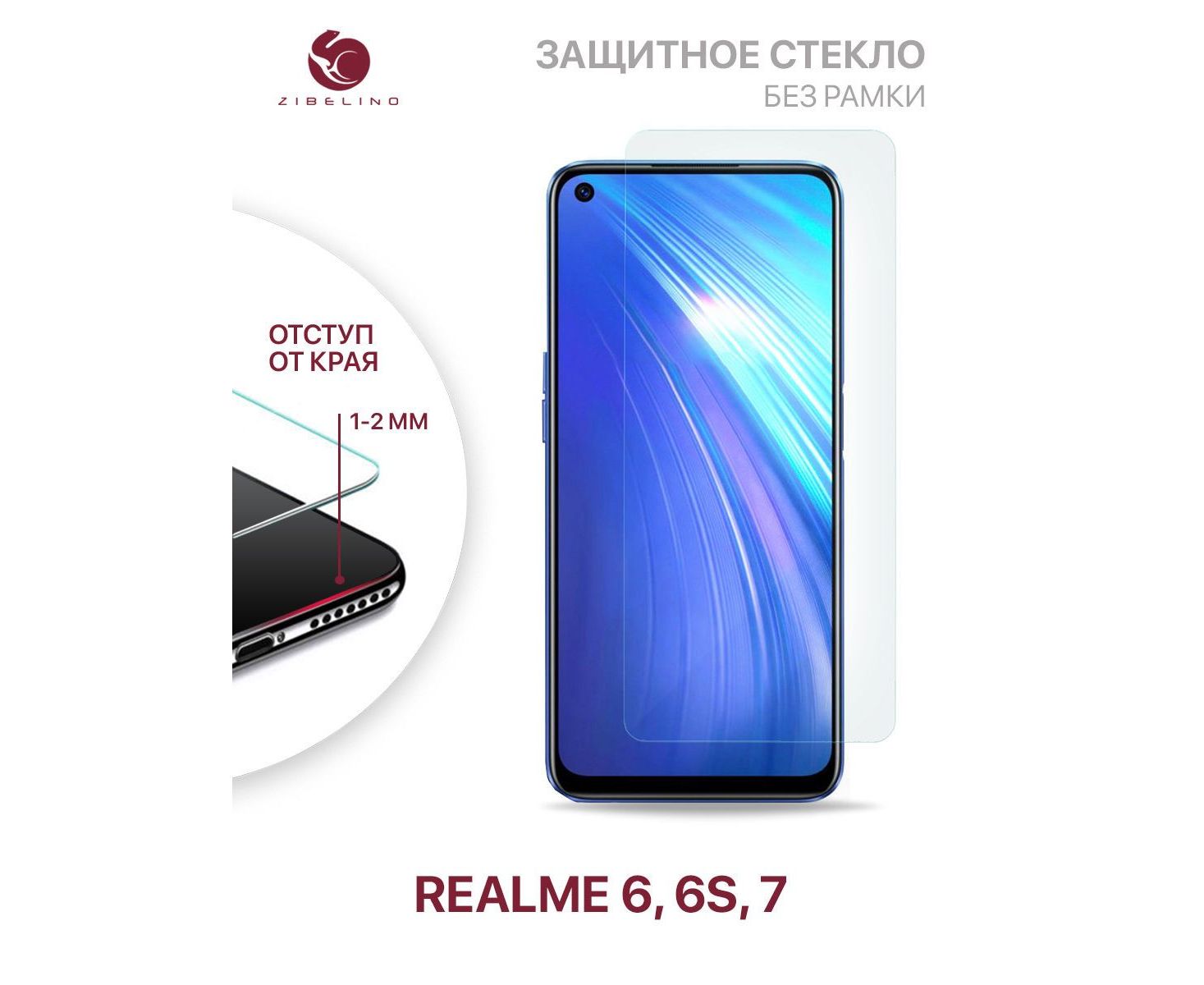 Защитное стекло для Realme 6, 6s, Realme 7 без рамки, с отступом от краев (Реалми 6 6s 7)