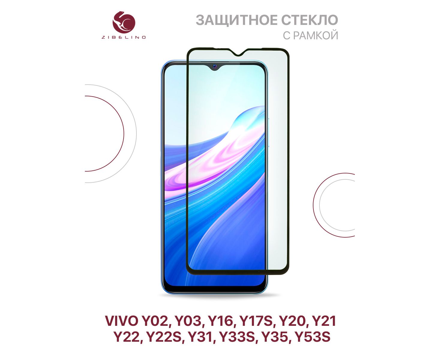 Защитное стекло для Vivo Y02, Y03, Y16, Y17s, Y20, Y21, Y22 Y22s, Y31 Y33s, Y35 Y53s с рамкой, Виво У02 У03 У16 У17s У20 У21 У22 У22s У31 У33s У35 У53s