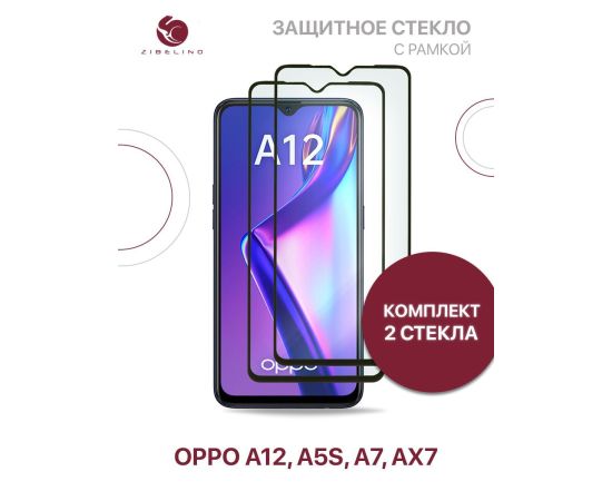 Защитное стекло (Комплект 2 шт) для Oppo A12, A5s, Oppo A7, AX7 с рамкой, Оппо А12 А5s А7 АХ7