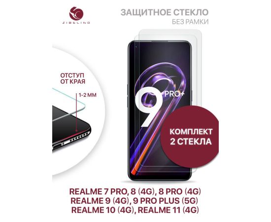 Защитное стекло (Комплект 2 шт) для Realme 7 Pro, 8 4G, 8 Pro 4G, 9 4G, 9 Pro Plus 5G, Realme 10 4G, 11 4G без рамки, с отступом от краев, Реалми 7 Про 8 Про 9 Про Плюс 5G 10 11