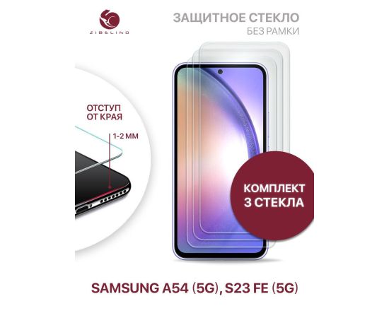 Защитное стекло (Комплект 3 шт) для Samsung A54 (5G), Samsung S23 FE (5G) без рамки с отступом от краев (Самсунг Галакси А54 Самсунг S23 FE)