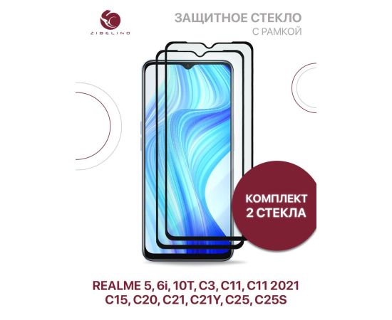 Защитное стекло Premium (Комплект 2 шт) для Realme 5, 6i, 10T, C3, С11, C11 2021, Realme C15 C20 С21 C21Y C25 C25S полноэкранное с рамкой, Реалми 5 6i 10Т С3 С11 2021 С15 С20 С21 С21У С25 С25S