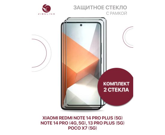 Защитное стекло Premium (КОМПЛЕКТ 2 шт) для Xiaomi Poco X7 (5G), Redmi Note 14 Pro (4G/5G), Note 14 Pro Plus (5G), Note 13 Pro Plus (5G) полноэкранное, с рамкой (Ксиоми Поко Х7 Про, Редми Нот 13 Про Плюс, Нот 14 Про Плюс, Нот 14 Про)
