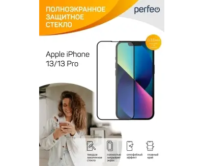 Защитное стекло тех пак Apple iPhone 13/13 Pro (6.1") черный Full Screen