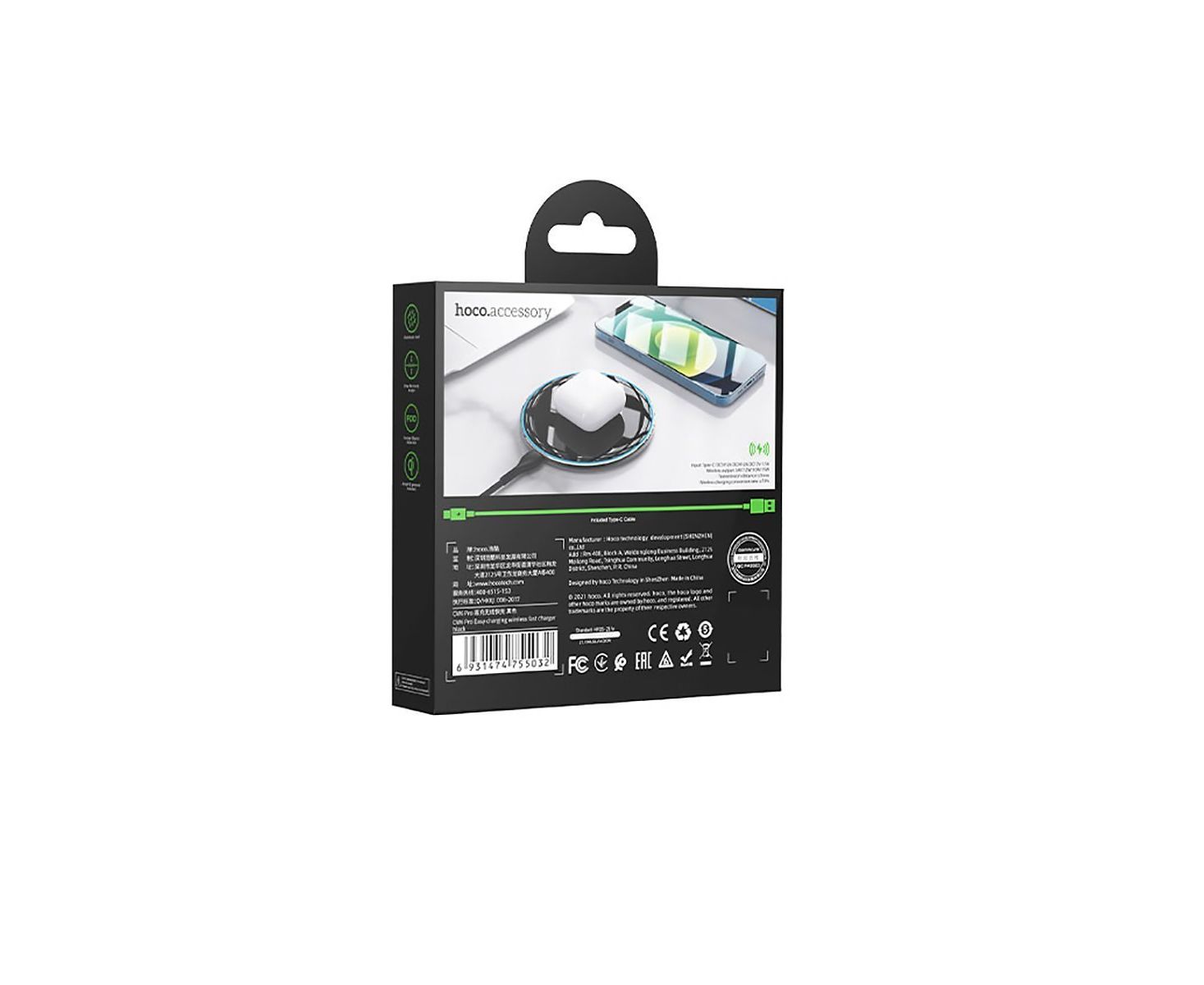 ЗУ Сетевое Беспроводное Hoco CW6 Pro PD/QC 15W (black) (215781)